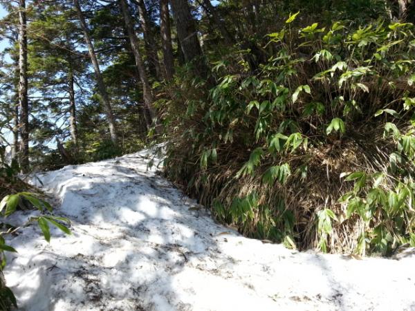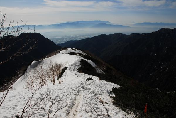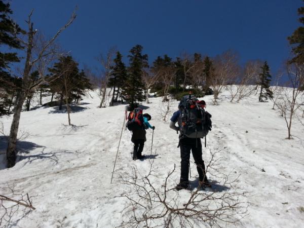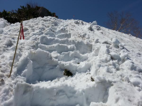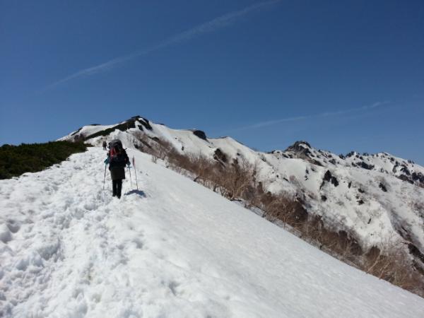合戦小屋から先の稜線は冬道で稜線直登。トレースを作ってくれてるので歩きやすいが、