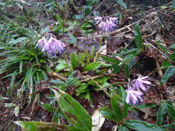 始めのうちは雨に濡れた濃い緑の中を歩きます。時折ミツバツツジやショウジョウバカマが緑に華を添えてくれます。