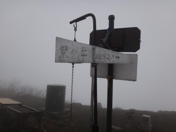 頂上は相変わらずガスの中。しかも寒いので早々に下山しました。
