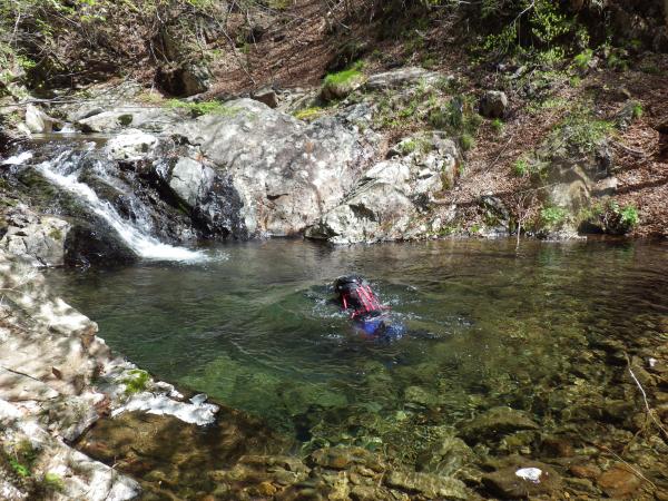 小さくても滝壺を見つけた途端、毎度の事ながらやはり迷わずダイブする小澤店長!