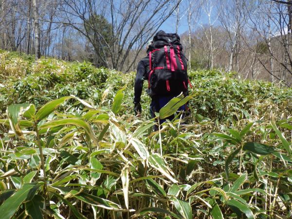 そこからは延々と藪の中をトラバース気味に突き進んでゆく…写真にはありませんが(撮る余裕がなかった)なかなかの傾斜。