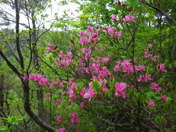 - 菱ヶ岳頂上から五頭三ノ峰辺りまでは残雪があり、特に菱ヶ岳頂上直下は滑り易いので注意が必要です。不安な方は軽アイゼンがあると安心です。
