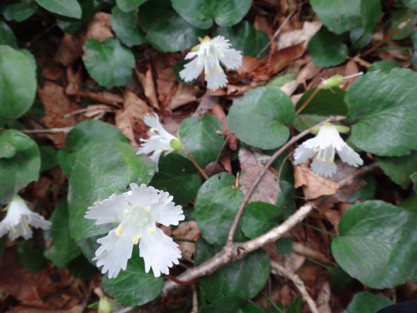 久しぶりの登山で息が上がってしまいましたが、後方の水田輝く越後平野と、道中の可愛らしいイワウチワが励ましてくれました。