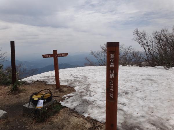 菱ヶ岳直下の急登はかなり苦労しました。残雪に足を取られているうちに踏み跡を見失ってしまうという失態…。半ばヤぶコキをしながら何とか頂上に辿り着きました。