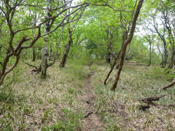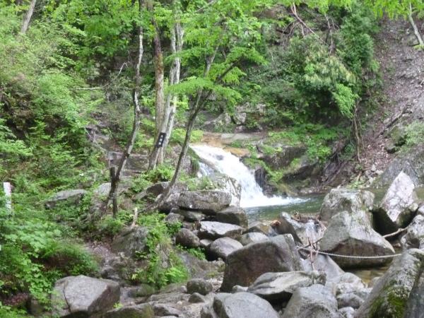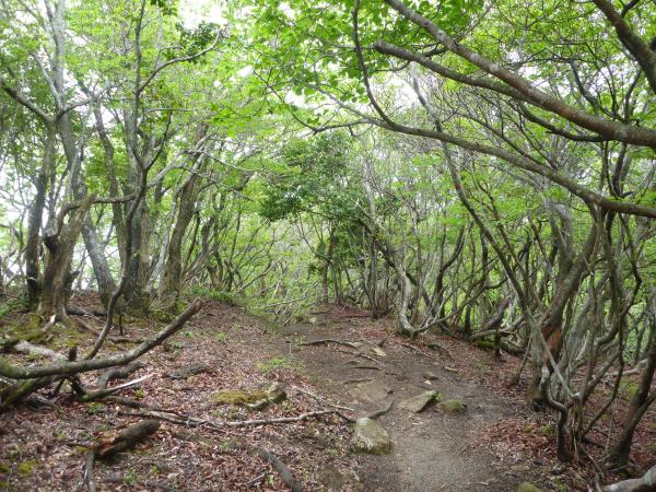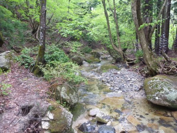 今は新緑がとても素晴らしい時期です。ブナなどの原生林が青々と葉を茂らせていました。シャクナゲはすでに花を落としてしまっていましたが、それでも緑の濃い葉が目に焼き付きました。美しい沢も多く、のんびりとそれに沿って歩いていると、時間が経つのを忘れます。雨上がりで雲が多かったですが、武奈ヶ岳からの展望もまずまず。琵琶湖方面も、かすかに見えました。ただ、晴れるとかなり暑いので、今回のコースでは1.5リットルの水を持っていって、ちょうど良いくらいでした。