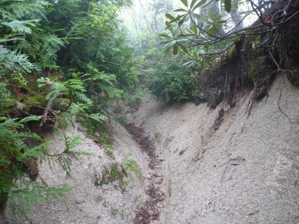 - 登山道は整備されているので、歩きやすい所が多いです。ただし、オガサカ分岐付近の沢沿いの道が少し分かりにくく、また岩場の通過には注意しましょう。実際、この日も雨上がりで岩が濡れていたので、少し滑った場面も。転落事故も起きている貴船の滝を通る時は、特に注意が必要です。
