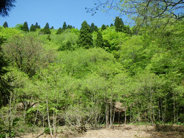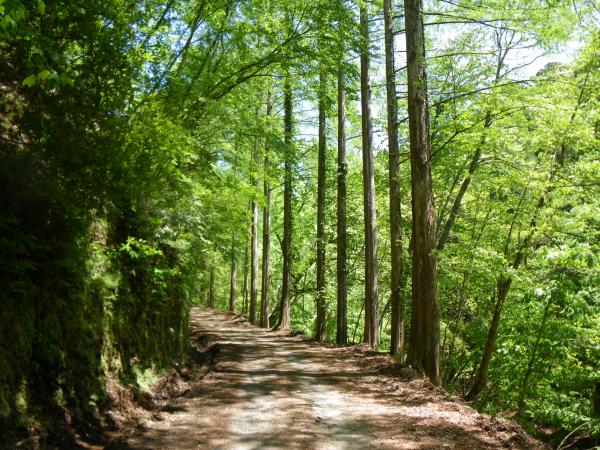 - 演習林ゲート(25分)枢倉林道分岐(38分)水場(55分)けやき峠(35分)大けやき(15分)長治谷作業場(25分)地蔵峠(20分)長治谷作業所(110分)演習林ゲート