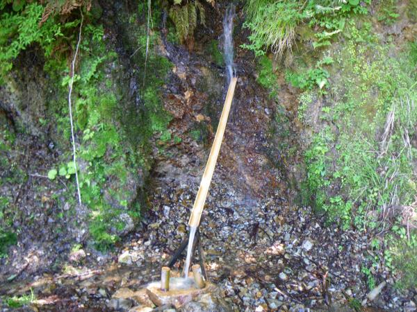 ③途中、水場があります。駐車場と長治谷キャンプサイトにはトイレがあります。
