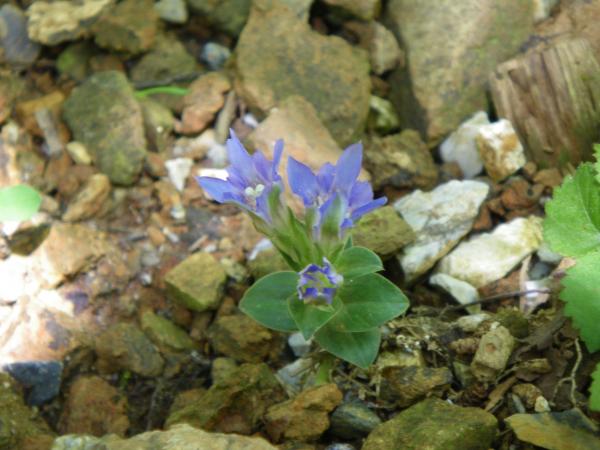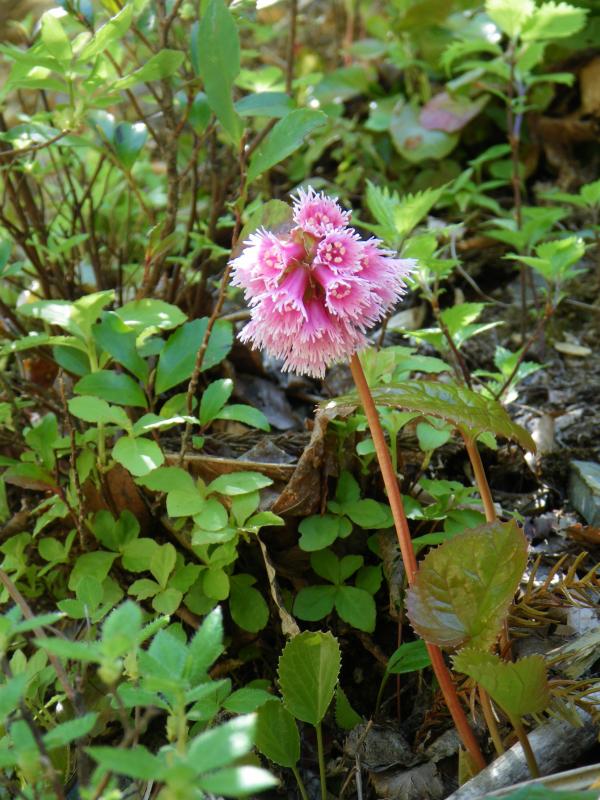 ⑥ショウジョウバカマ・イカリソウ・フデリンドウ・ミミナグサ・ウスギヨウラク・キランソウ・スミレ各種などが林道沿いに見られました。