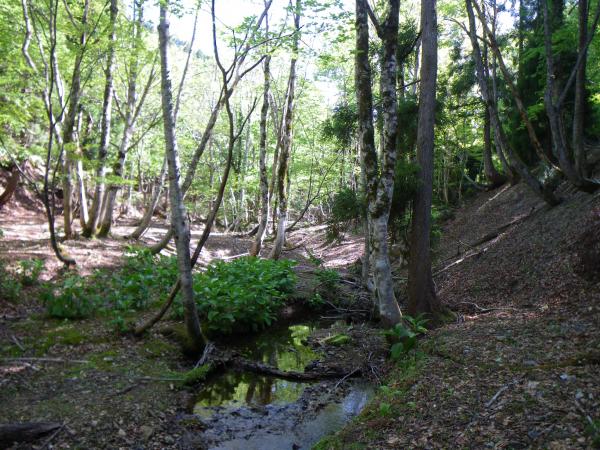 ひたすら林道歩きでしたが、新緑と源流部がマッチし、花も適度にみられ、いい散歩道でした。この区間はツアーに入れば、バスで通過する部分ですが、歩けばそれなりに発見があります。ただし、長いので注意です。ツアーは美山文化村の7350円だったと思います。芦生原生林は人気はトロッコ道、きれいなのは上谷方面ということなので、今度は申請していってみたいです。帰りの日吉町付近で子供の黒いクマにでくわし、あやうく車で引きそうでした。