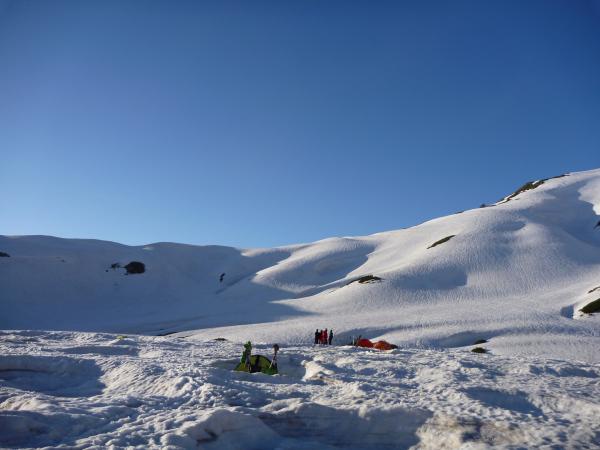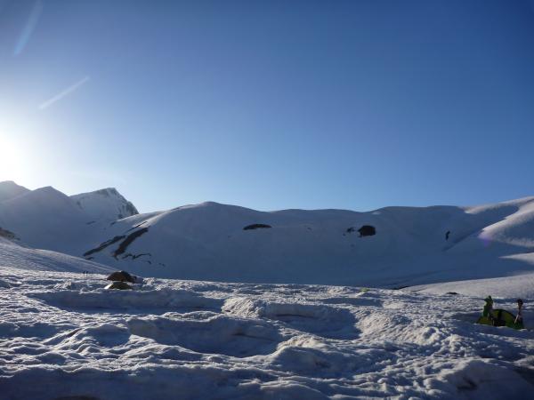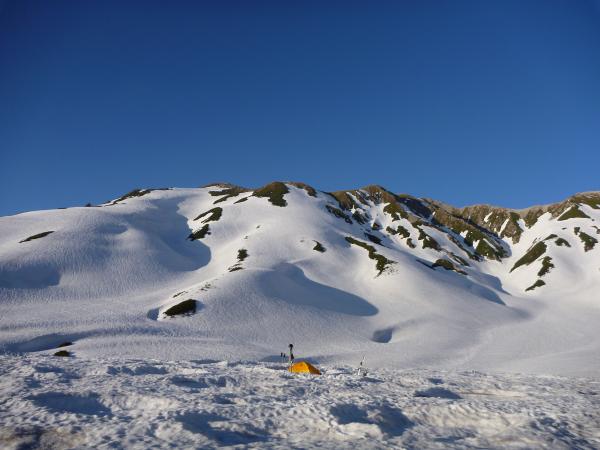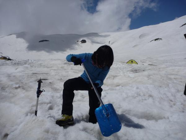 雪が柔らかく、ピッケルが効く状況だは有りませんので、気を引き締めて安全歩行に努めてください。