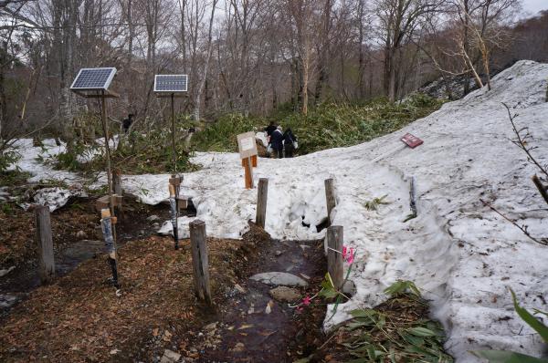 見晴〜東電小屋までのルートで一部積雪があります。
