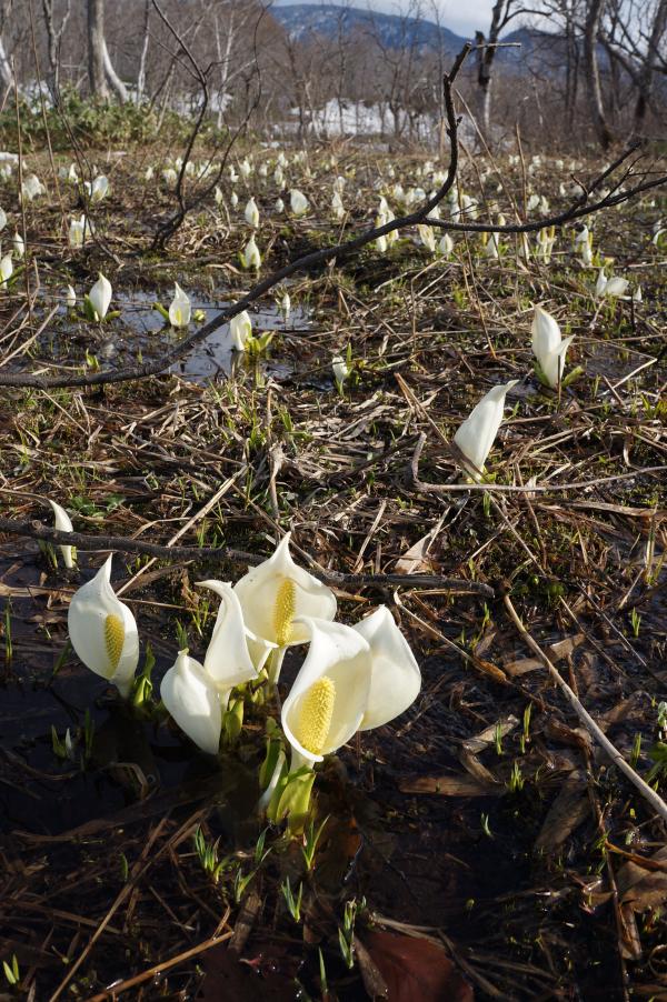 そして肝心の水芭蕉。一番の見ごろは月末~6月初旬でしょうか。まだ所々に咲いているけれど一面に広がるほどではありませんでした。ただ、たくさんの芽が尾瀬ケ原の至る所で見つけることが出来たので、あたたかい日も続いているのでピークが来るのもすぐでしょう!!時間があれば一番の見ごろにも訪れたいです。