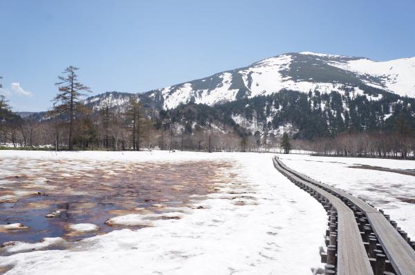 除雪作業も進んでいるため、木道も見え始めています。