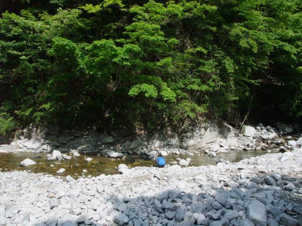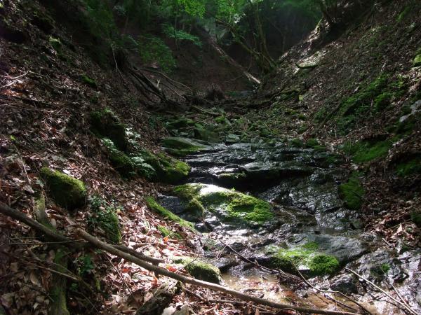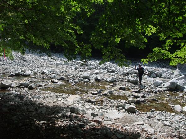 ○犬越路からの下りは、ザレた急な下り坂です。沢沿いに出ると平坦になってきます。