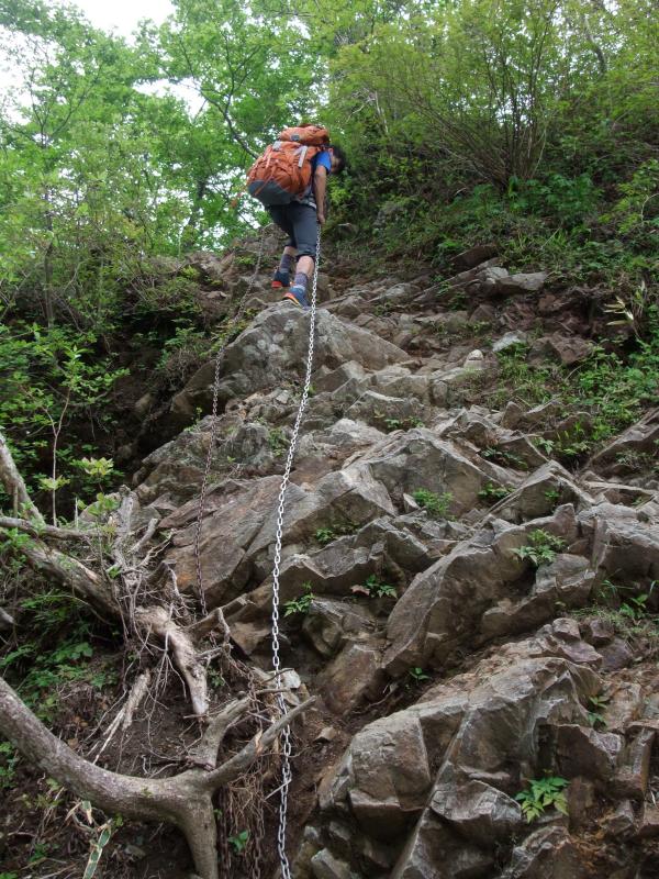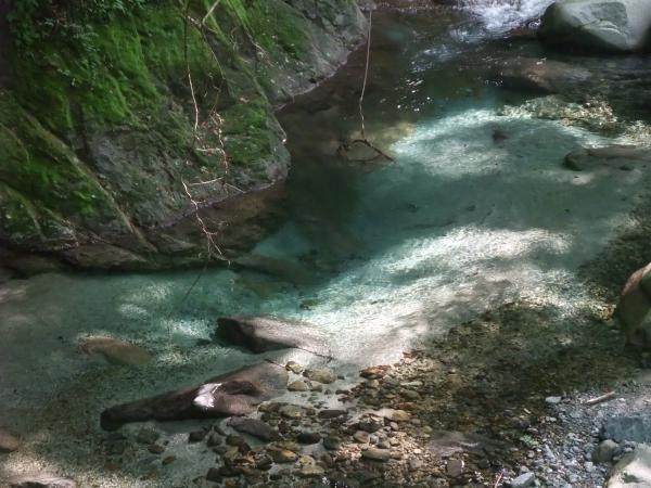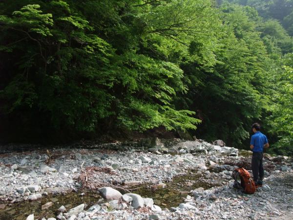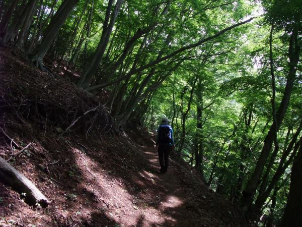 今回のコースは緑が豊かなコースです。山頂付近では見事なブナ林が広がっていて、その大きさに圧倒されました。また、犬越路方面へ下っていくとすごく山深い中を歩いている感じがしてとても好印象でした。下山途中の用木沢で頭から水をかぶってリフレッシュできて気持ち良かったです(笑)。