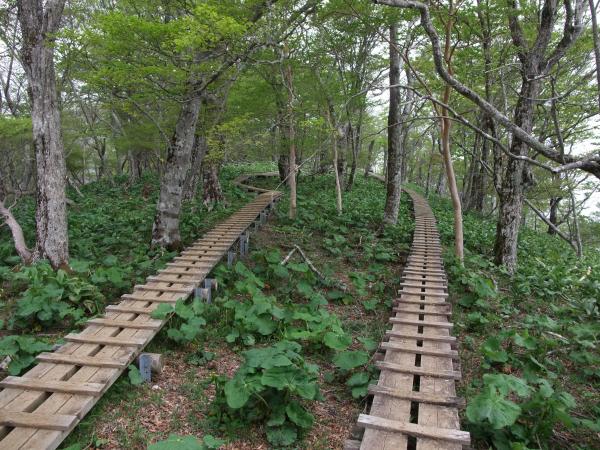 ○木の階段や木道が出てくると、山頂はもうすぐです。山頂は広く、休憩場所に困りません。