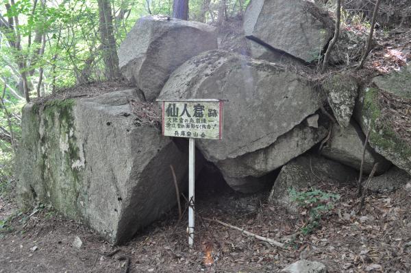 ということで、ずんずん進んでいくと、道はしっかり整備されており、難なく「仙人窟跡」に到着。