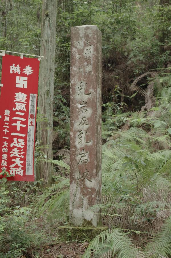 乳岩峡(90)鬼岩(90)胸突き八丁の頭(30)明神山山頂お昼休み30分(90)鬼岩(90)乳岩峡