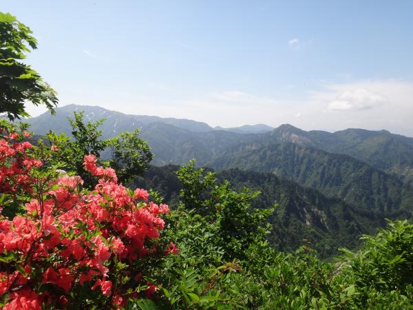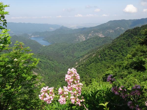 稜線に出てからの眺めは格別です!眼下に内ノ倉ダム、俎倉山や蒜場山が次第に大きくなっていきます。