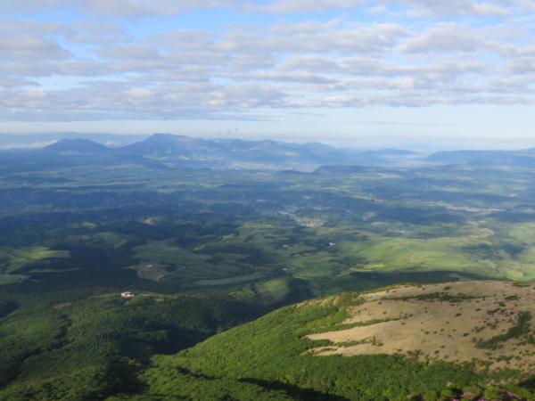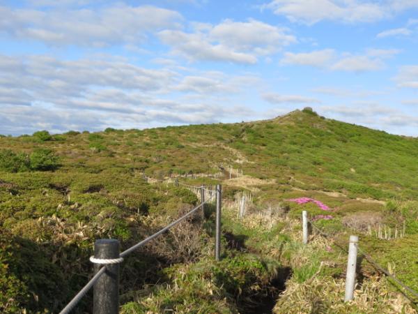 6月2日に山開きが実施されたばかりの九重山へ行ってきました。牧ノ戸峠登山口より最短で行ける扇ヶ鼻まで往復しました。山頂付近のミヤマキリシマは蕾の株もあり、見頃はもう少しあとのようですが、道中には、イワカガミやマイズルソウをはじめとする野の花やドウダンツツジも多く、楽しめました。植生保護の柵がある区間もありますので、立ち入らないようしましょう。峠の駐車場は、平日にも関わらず、下山した8時前には満車でした。路肩駐車も多くみられましたので、早めの到着が無難ですね。