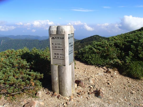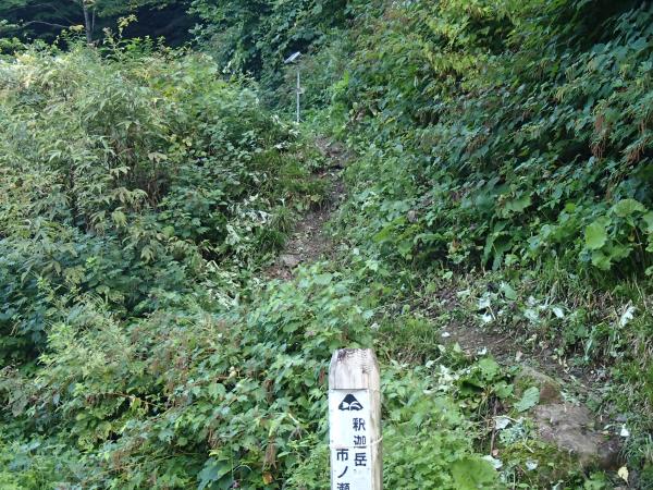 - 市ノ瀬(10分)釈迦新道登山口(46分)釈迦岳登山口(120分)釈迦岳前峰(18分)
