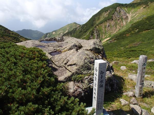 釈迦岳頂上直下(107分)七倉の辻(53分)大汝峰山頂(39分)白山御前峰(41分)