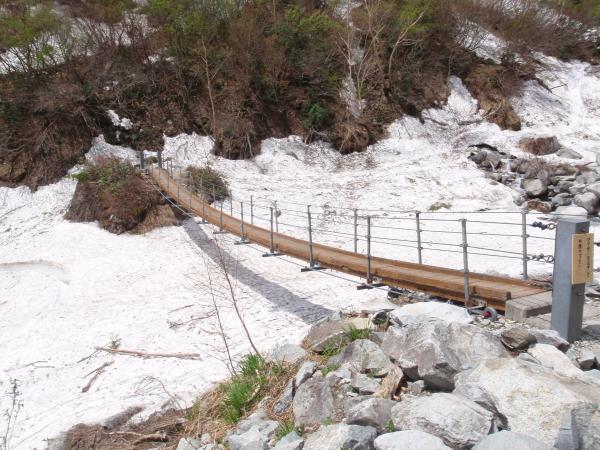 - ☆本谷橋から先に雪が出てきてアイゼンを付けるか迷いますが、ちょっと行くと雪が無い夏道を通ることになるので、ここでアイゼンを付けない方が良いです。