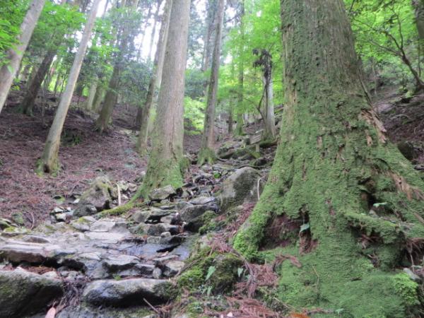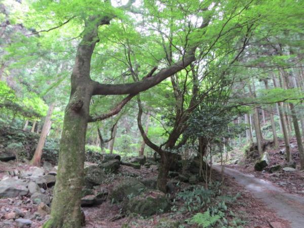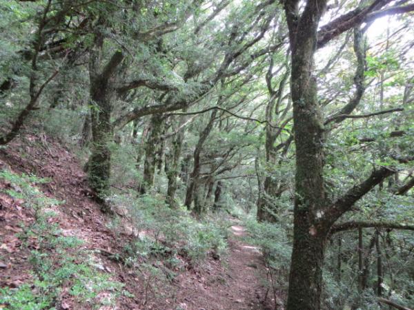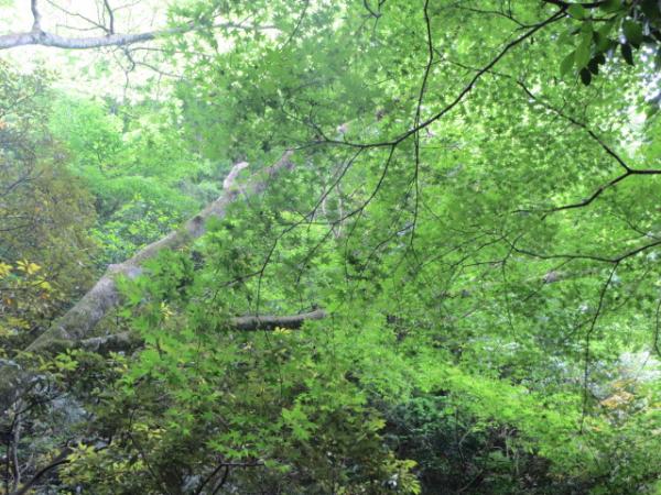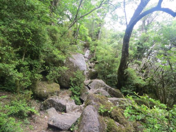 過去の災害の影響で、昨年7月より登山道の改良工事で通行止めでしたこのコースですが、今年の4月より通行可能になりましたので、登ってみました。登山口より山頂までの標高差は600m以上あり、登り応えのあるルートでした。崩壊したであろう橋がいくつか新しくなり、危険な箇所はほとんどなかったです。水舟上の分岐より左へ折れ山頂へ最短で行くルートもありますが、国の天然記念物であるツゲの原始林を経由して山頂へ行くことが出来ます。来月下旬からは、オオキツネノカミソリ観賞も楽しめます。