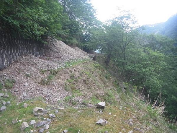 阿世潟峠~親水公園:下りはじめはひどく荒れている。林道についてもしばらくは崩落と崩壊の満ちになる。平行する沢をまたぐと快適な林道になる。