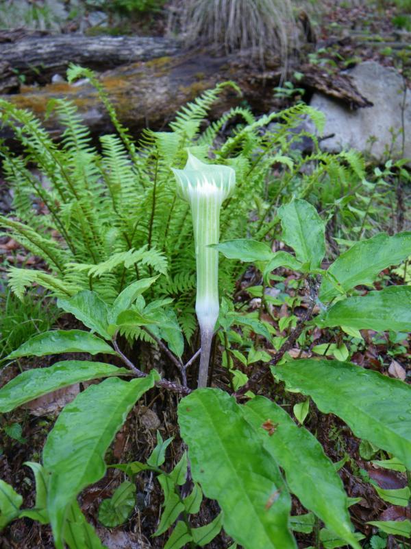 ②時期的にマムシグサが多く見られた。北千丈寺山稜線にチゴユリが見られました