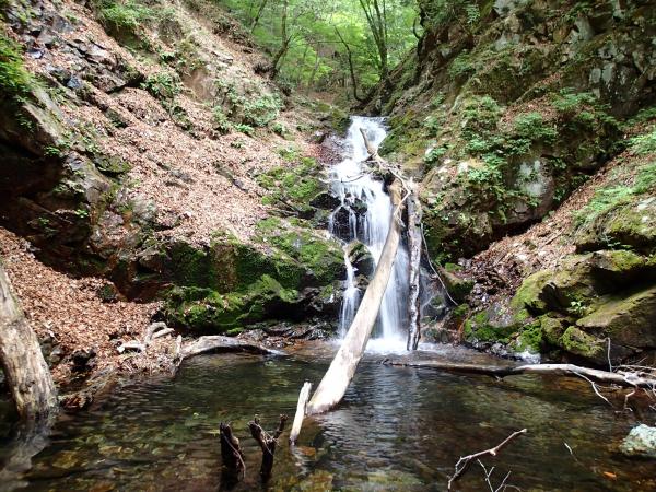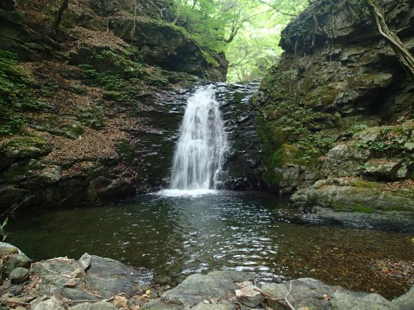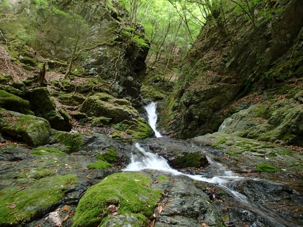 そのあとは適度な小滝を超えてながらしばらく沢歩きしていると不動滝が現れる。