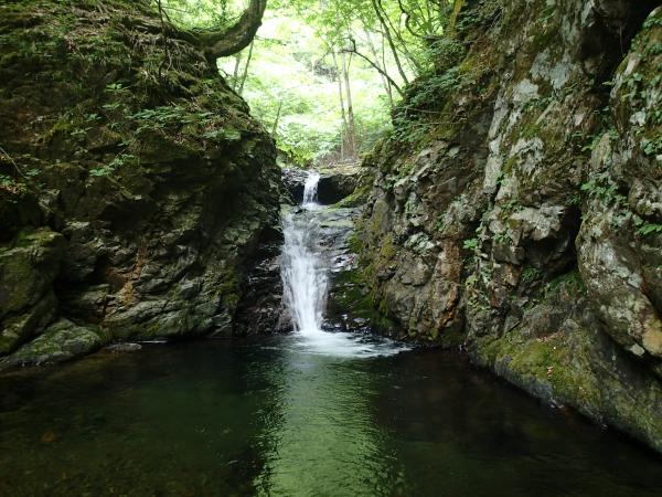 - 大若沢休憩所(10分)→勘兵衛ノ滝(30分)→金山沢出合(60分)→直滝8m(40分)→大若沢休憩所