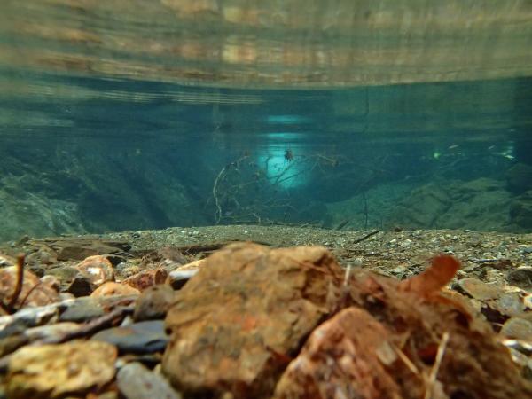 水温はやや冷たいくらいで天気が良い日に泳ぐと気持ち良さそう。