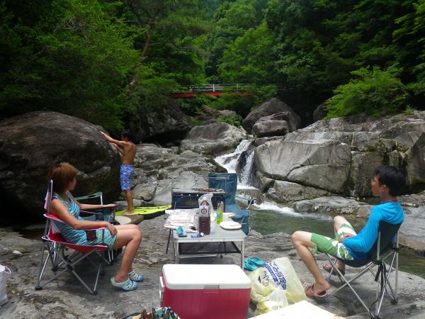 また、岩の横には川が流れてて暑くなったら川遊びができるので海パンで行くとより楽しめます。