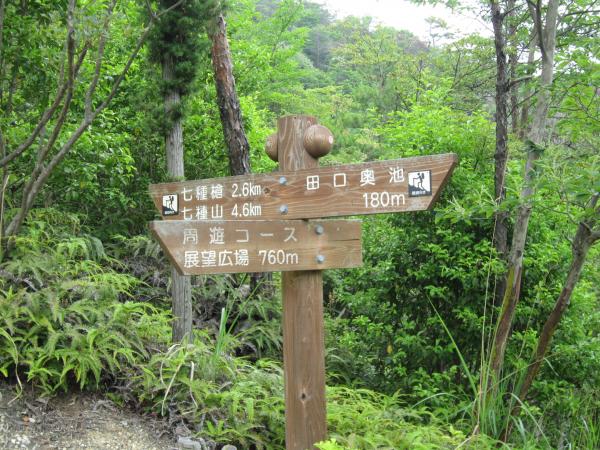 - 野外活動センター―(30分)―稜線―(90分)-七種槍―(80分)―七種山―(20分)―七種滝―(5分)-虹ヶ滝―(30分)-野外活動センター