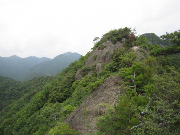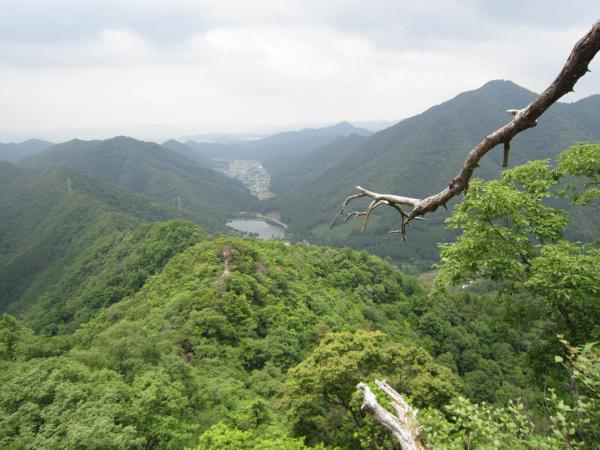 野外活動センターで姫路消防局の方々が水難救助訓練を実施されているのを見ながら急登を登って行きました。30分ほどで稜線にでて、そこからは景色のよい稜線歩き。樹林帯、岩場や鎖場など飽きさせない楽しい登山道を進みながら七種槍へ。