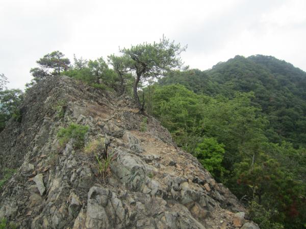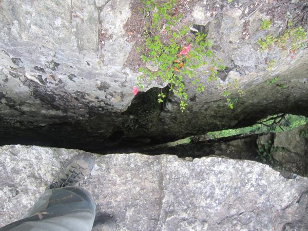 頂上近くのつなぎ岩は幅40cmの亀裂が高さ15mもあり足を滑らせたら大変だ。