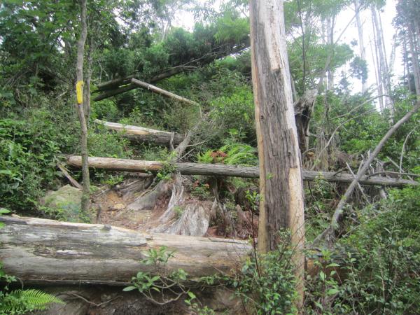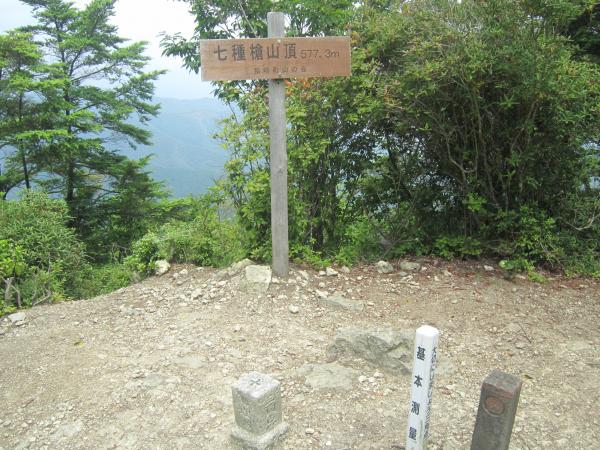 七種槍から七種山までの縦走路では狸に遭遇。あわててカメラを出しましたが全然間に合わず、、、。アップダウンを繰り返し七種山付近では倒木だらけの道を進みようやく頂上へ到着。