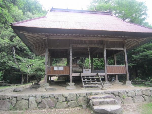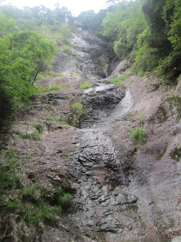縦走路は七種薬師へ行くルートもありましたが七種滝を見たくてここから下山道へ。今日の七種滝は空梅雨のせいか水量が少なくちょこっと残念。山門を過ぎるとそこから林道歩きとなったが、そこに今度は大きな鹿が現れた。今度こそと思う間もなく鹿は沢筋に隠れまたもシャッターチャンスを逃してしまった。今日は狸と鹿に歓迎?され楽しい山歩きができました。今度は雨上がりの水量の多い滝を見にリベンジしよう。