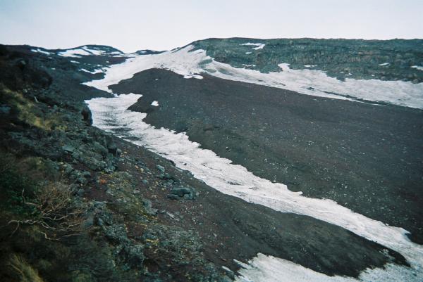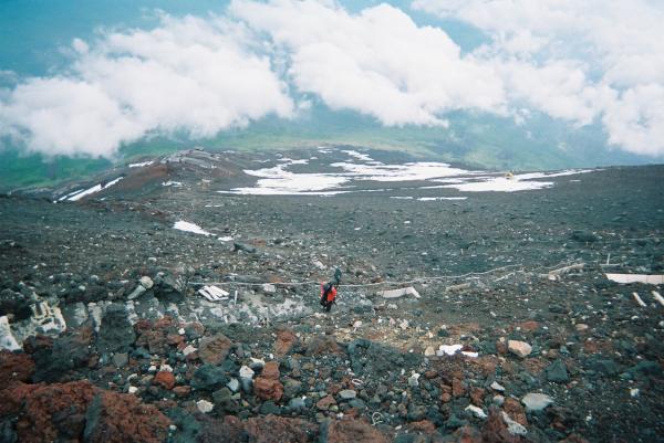 登山道で雪があるのは十合目直下と剣ヶ峰周辺のみです。