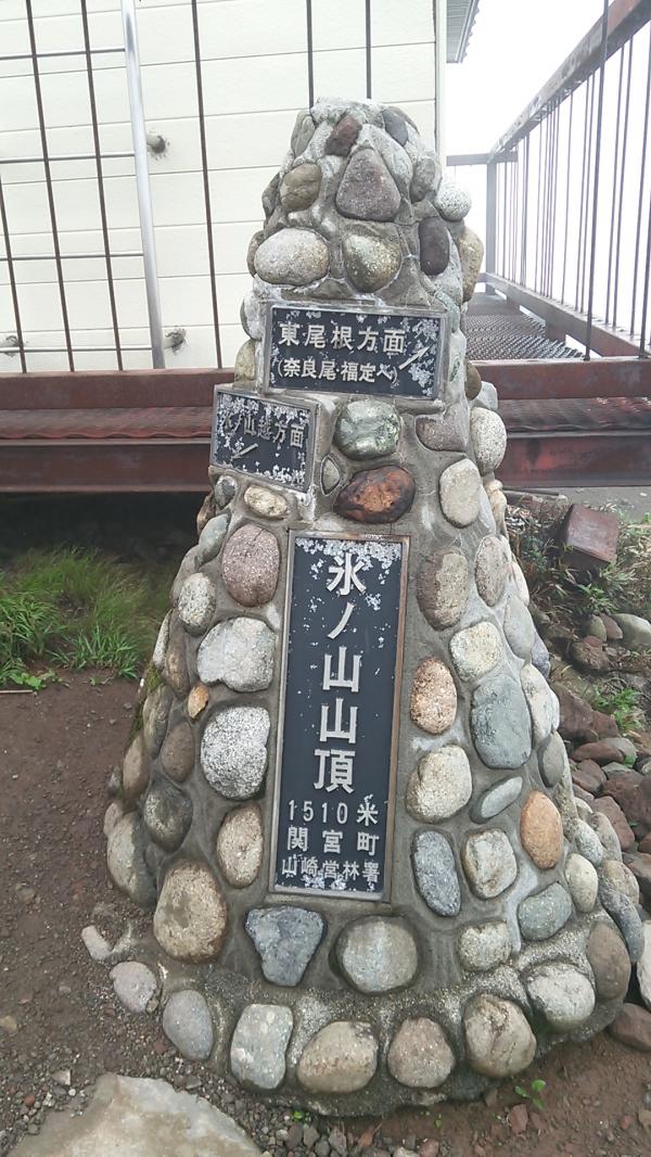 「氷ノ山山頂」までは、木で作られた階段が続きます。今日は上から水が流れていて、水溜りに足を置くしかないような箇所もちらほら…。