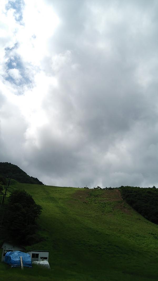 東尾根登山口に下りた頃にはしっかりと青空が見えていました。ゲレンデに差し掛かると、最近建てられたと思われるトイレ小屋があり、非常にきれいでした。