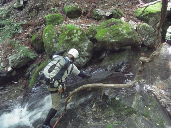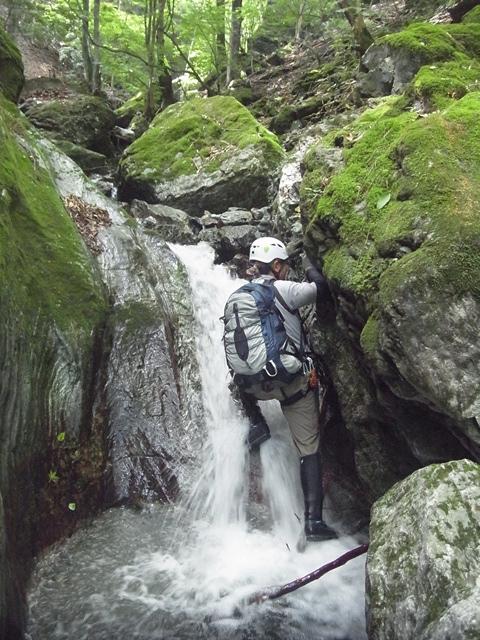 最後のCS2段10m滝はなかなか登り応えありCSの下を潜って滝上に出る