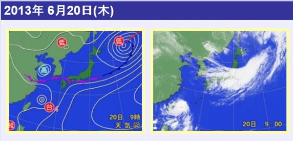 ウェブサイト「気象人」様の天気図をお借りしました。実際の写真と見比べてみました。