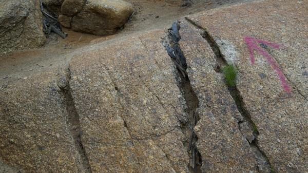 - 登山道は良好。南御室小屋を出てすぐが花崗岩が風化してざれて、樋状にえぐれています。