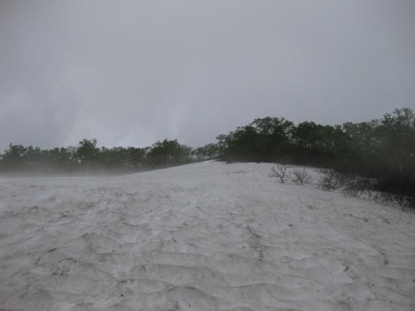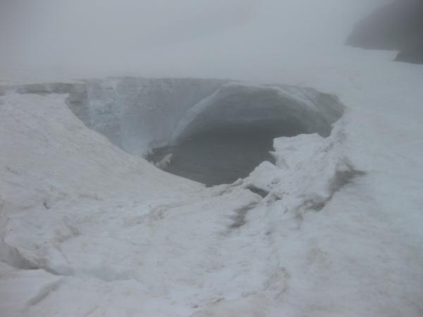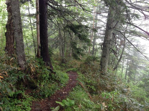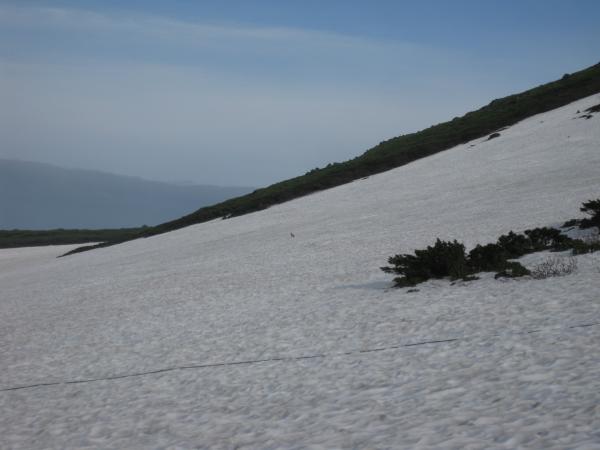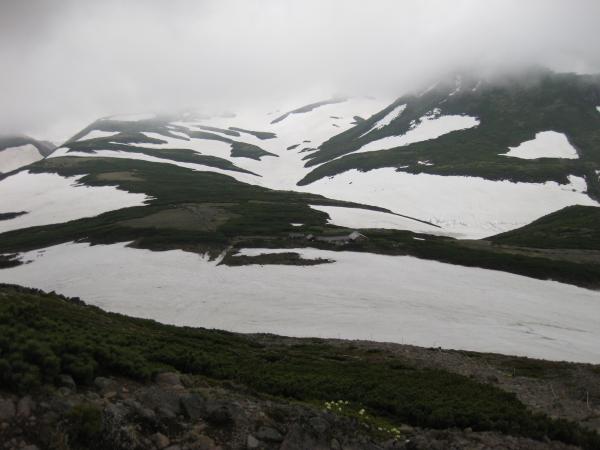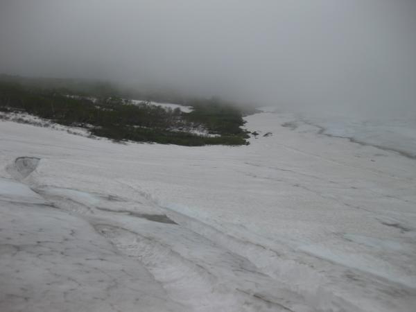 雪のない夏道はしっかり道はついていますが、雪渓上で霧に巻かれると厄介です。特にこの時期は入山者も少なく、リボンなどマークも無いため、道迷いが起こりやすいです。(残雪期は特に道迷い遭難が多いそうです。)25000分の1の地図、コンパス、GPSは必携です。今回、ガーミンGPSの正確さには非常に助けられました。