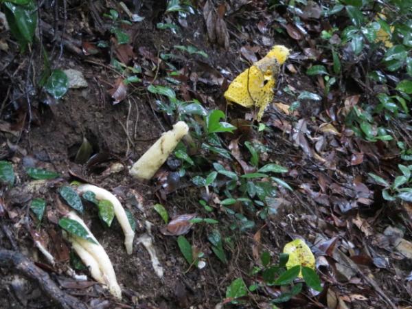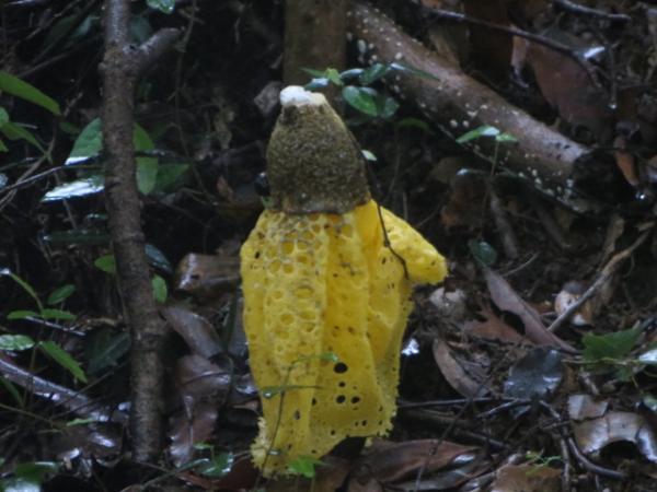 宗像市にある人気の里山「城山(じょうやま)」にこの時期見られるウスキキヌガサタケに会いに登ってきました。昼前の遅いスタートでしたが、大雨の後で気温が低かったこともあり、運よく虫に食べられることもなく綺麗なままのものを含め、3本を観賞できました。ほぼ毎日観察されている地元のかたに場所を教えていただきました。顔を出している周辺にはタマゴがあるかも知れませんので、写真撮影の際は、あまり近づきすぎず足元に注意しましょう。