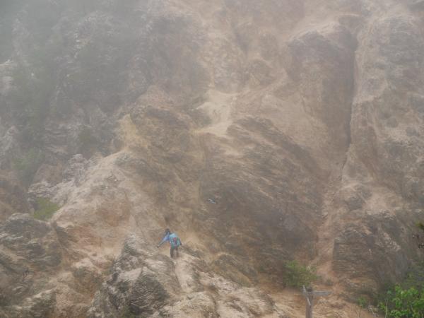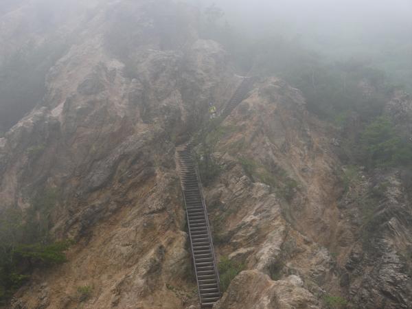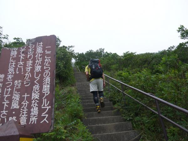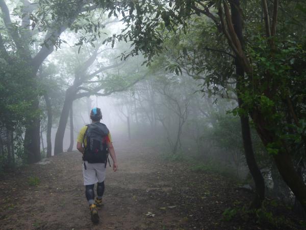 やたらと湿度が高い日で、山中はずっとガスっていました。2Lのハイドレーションがほぼ空っぽになるほど、給水しながらの暑い歩行でした。ただ、雨は降らず、足元はやや湿った程度で核心の須磨アルプスの岩は乾いていました。濡れていたらかなり滑りやすいでしょう。