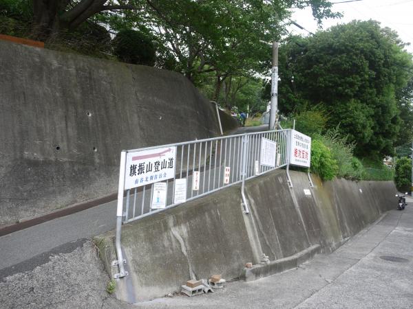 - JR塩屋駅(10分)旗振山登山道の看板(3)山王神社(22)ふんすいランド(7)旗振山(15)鉄拐山(15)おらが茶屋(33)栂尾山(18)横尾山(17)馬の背(10)東山(48分)山陽電鉄板宿駅